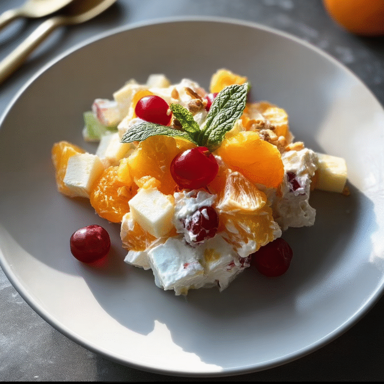 I can still recall the first time I experienced the bliss of Ambrosia Salad. It was a sweltering summer afternoon in Asheville, North Carolina, and my grandmother had just whipped up a batch for our family gathering. The air was fragrant with the scent of fresh fruit and sweet marshmallows as we gathered around the table. I watched in awe as she delicately folded whipped cream and fruit into a big mixing bowl, the colors swirling together to create an enticing masterpiece. When I took that first bite, a wave of nostalgia washed over me. The creamy texture paired with the vibrant bursts of fruit sang a sweet melody, reminding me of childhood summers filled with laughter and love. Ever since that day, Ambrosia Salad has held a special place in my heart—and my family’s dinner table.