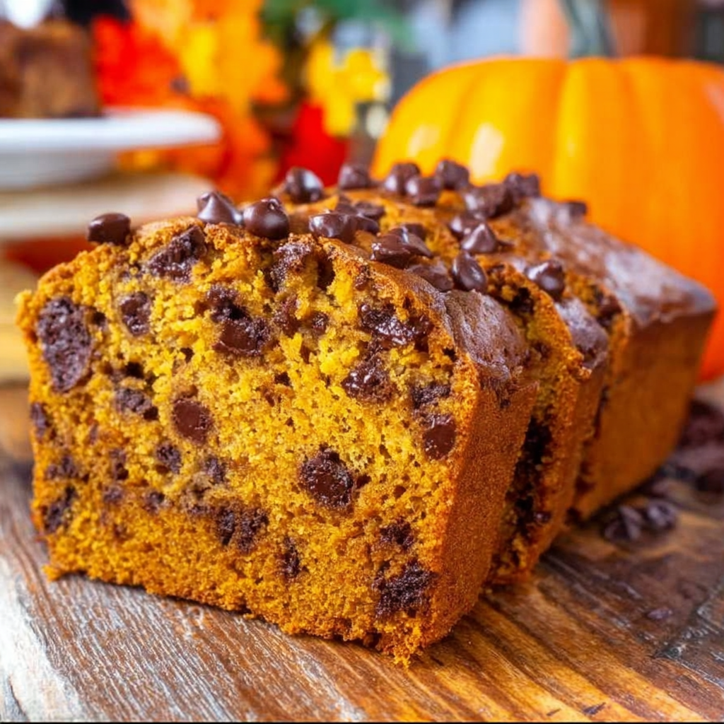 A cherished family recipe for moist and flavorful pumpkin bread with chocolate chips, perfect for autumn gatherings.