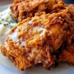As I dredged the juicy chicken pieces in the rich, seasoned flour, I felt a connection to the generations that had come before me—each one leaving a kind of magic with every meal shared. The sizzle of the chicken hitting the hot oil filled the air with a mouthwatering aroma that made my heart race with anticipation. When the first piece came out, perfectly browned and crisp, I could hardly wait to sink my teeth into it. That evening felt special, a blend of nostalgia and joy—a dish that represented love, comfort, and the spirit of Southern cooking. Chicken Fried Chicken was more than a meal; it was a memory, a celebration, and a way of bringing family together around the table.