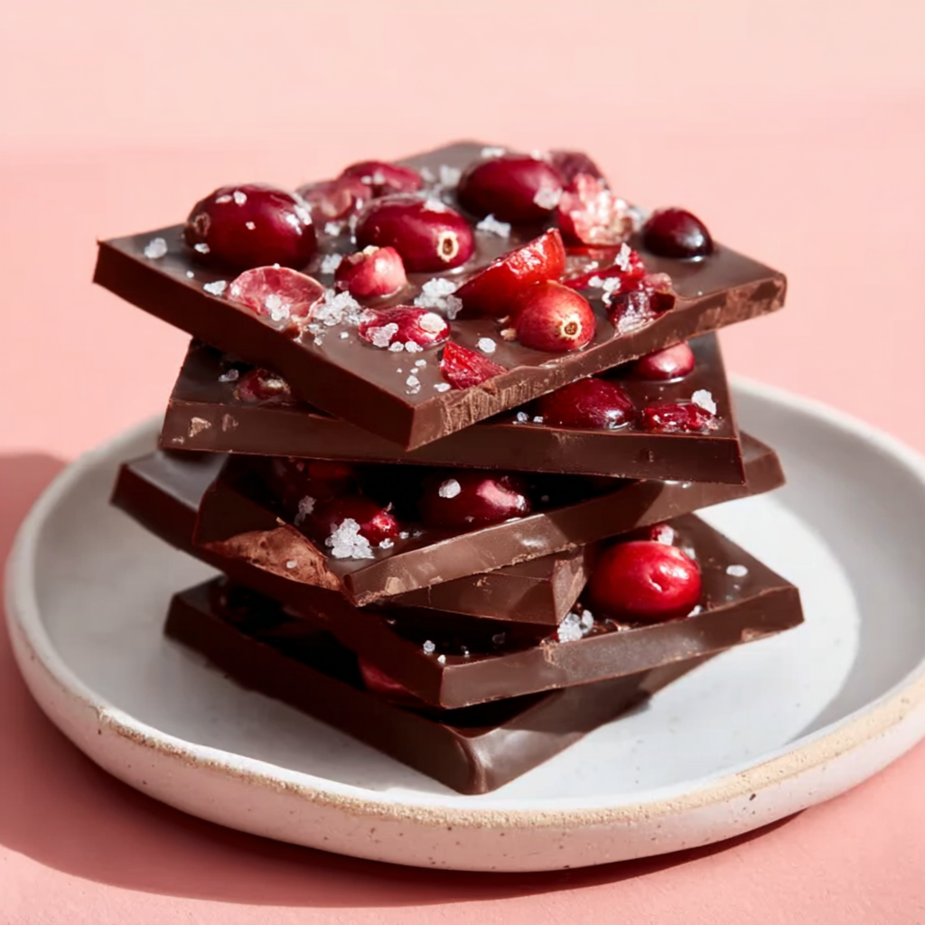 This treat blends the deep, velvety richness of chocolate with the tart pop of dried cranberries. Add a handful of toasted nuts or a sprinkle of sea salt, and you’ve got layers of flavor and texture—smooth, chewy, crunchy, and just a little tangy. It’s the perfect balance of sweet and tart, making it a hit with both chocolate lovers and those who prefer something less sugary.