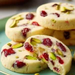 Delicious and festive Cranberry Pistachio Shortbread Cookies that blend nutty and fruity flavors for a delightful treat.