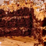 A rich and moist chocolate cake layered with sweet coconut and pecan frosting, perfect for celebrations and family gatherings.