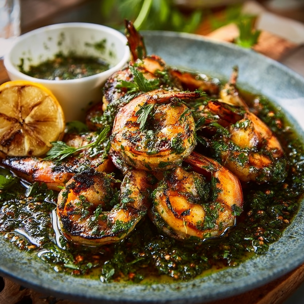 A delightful dish combining perfectly seared shrimp with a vibrant chimichurri sauce, creating a burst of flavor that brings joy to any gathering.