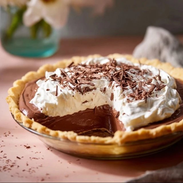 This pie is creamy, chocolatey, and perfectly balanced with a buttery crust. The filling is smooth and velvety, offering all the indulgence of chocolate mousse with the nostalgic comfort of pudding. A topping of whipped cream or chocolate shavings makes each slice feel like a little celebration.