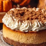 A rich and creamy pumpkin cheesecake with a buttery Biscoff cookie crust, perfect for fall gatherings and family celebrations.