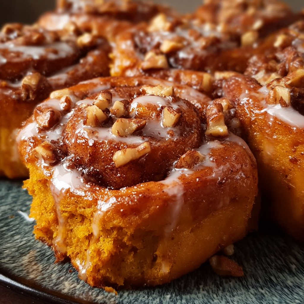 Deliciously soft and warm Pumpkin Cinnamon Rolls infused with aromatic spices, perfect for cozy autumn mornings.